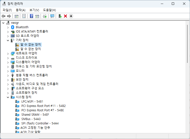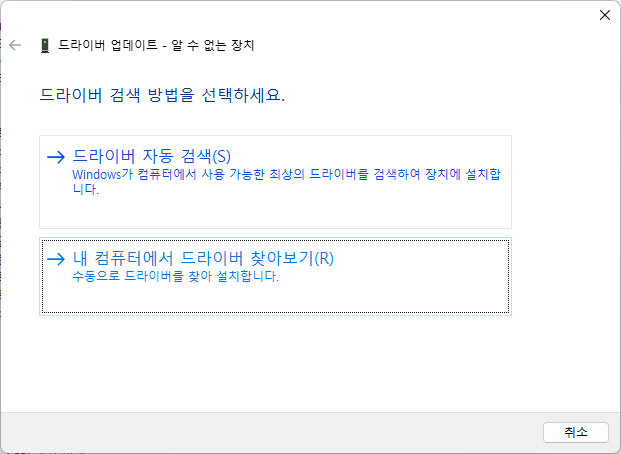 오류가 난 드라이버를 업데이트해 줘야 한다.